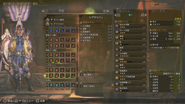 事前に防御Lv7に雷耐性Lv3の構成を準備してました。