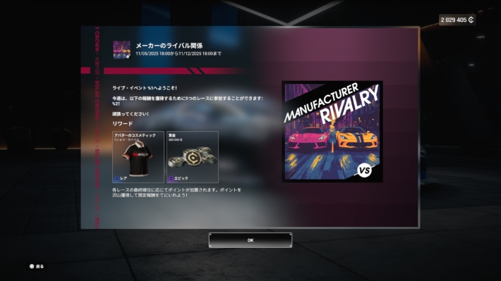 11月5日からのライブイベントは ライバルメーカー対決レース。