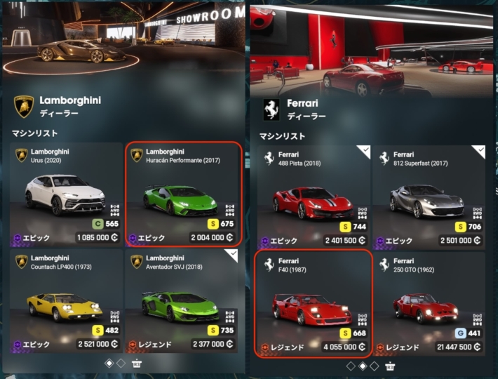 Lamborghini Huracan Performate か FerrariF40 のどちらか。