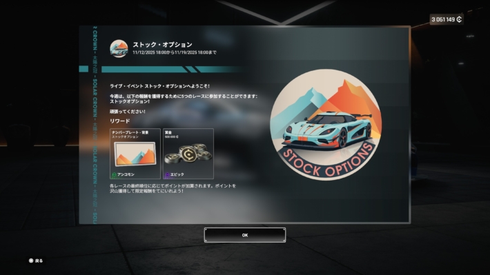 今回のライブイベントはバグがあって、レースレギュレーションの自動設定がうまく作動せず、レースに参加することができません。