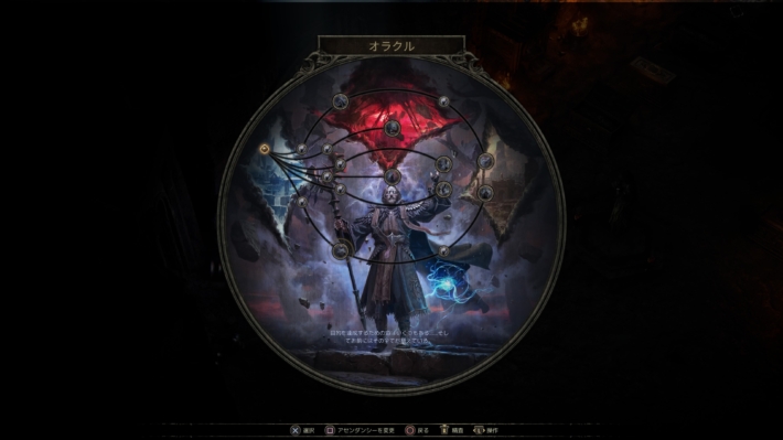 Act2の途中でアセンダンシーを選べるようになりますが、オラクルを選択しています。