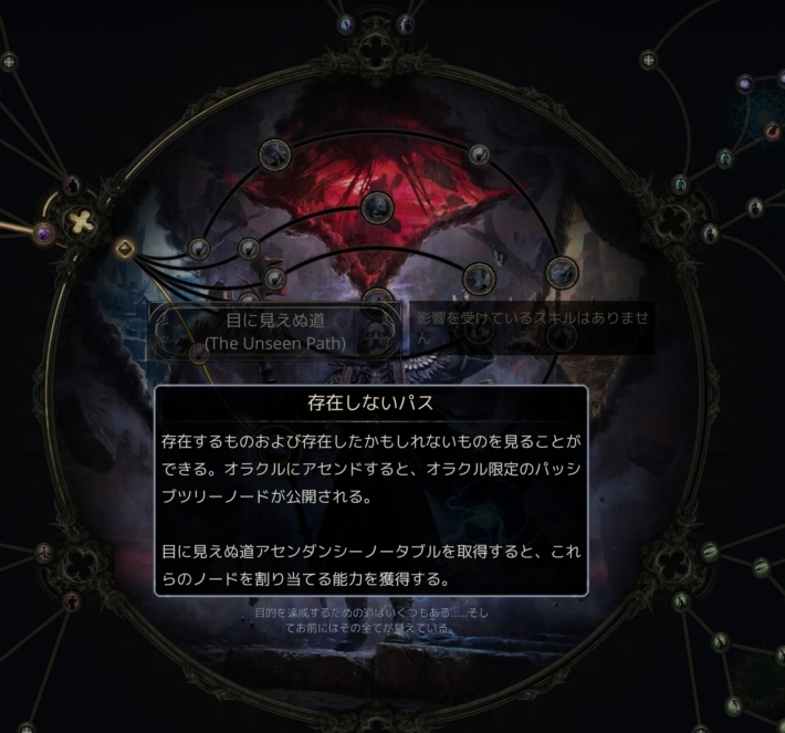 アセンダンシースキルの「目に見えぬ道」を取ると、パッシブツリー内にオラクル専用のパッシブが登場します。
