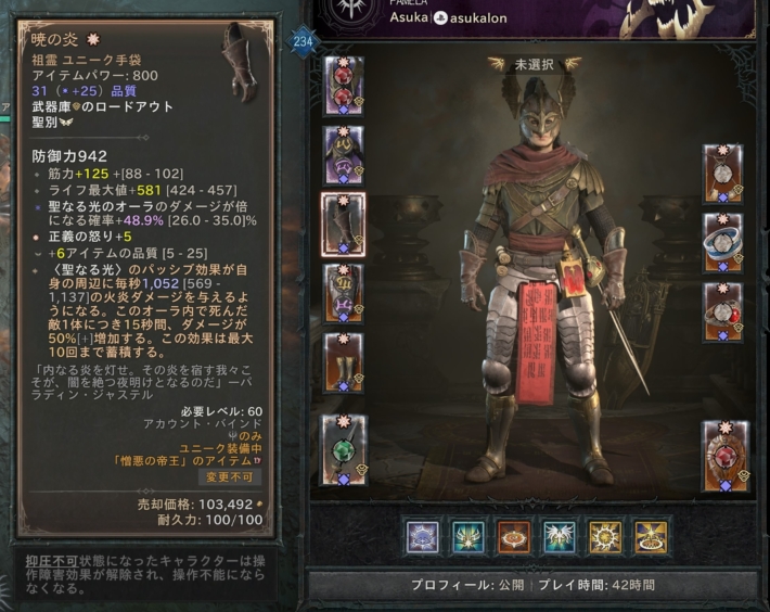 オーラディンで正義の裁定者を使わないバージョンのビルドがあるようなので、そちらも装備の準備ができ次第試してみようかな。