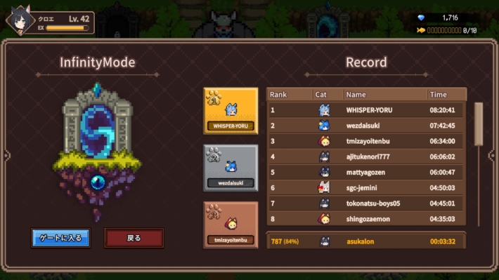 キャラクタごとのレベルシステム、装備品によるステータスアップなど、ヴァンサバとは異なる要素は追加しているが、チグハグさが目立つ感じ。