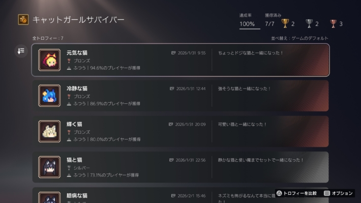 10時間弱で本編のステージ7までクリアできトロフィーも取得。
