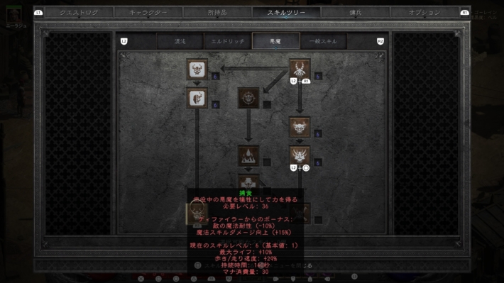 敵の火耐性を減少させる装備が整ってくれば行けるようですが、まだまだその域には達していませんので、混沌タブもう一つのラインであるミアズマ系列へリスペックです。