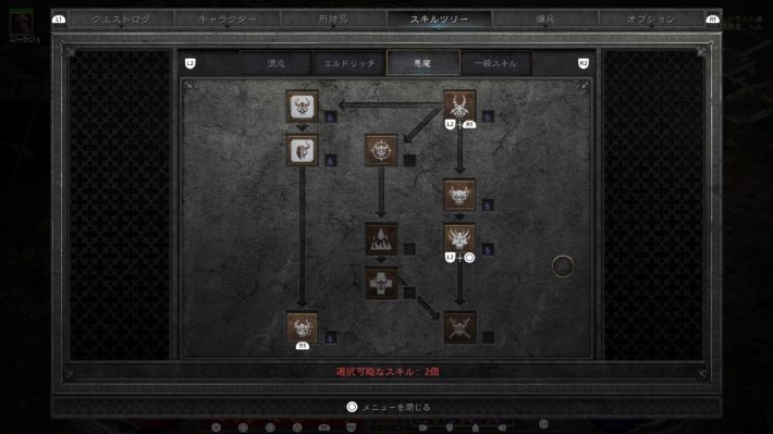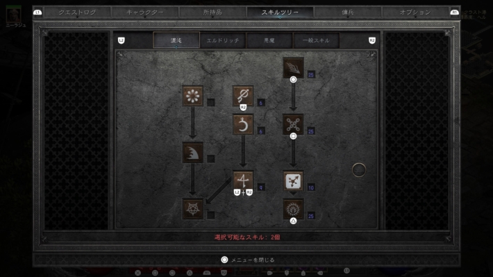 一通りポイントを振った後、紋章:死に効果が広がるLv10まで目標に。