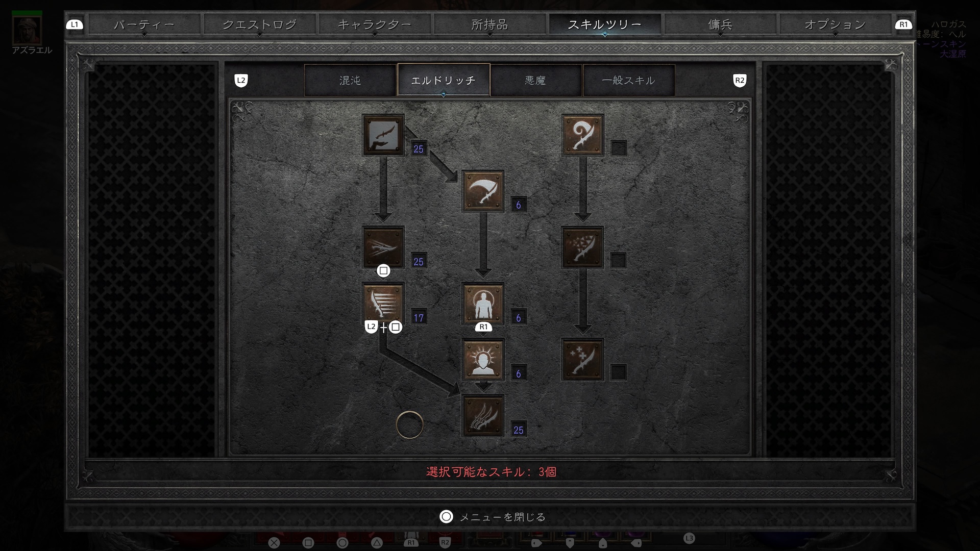 昨今のエコーストライクのビルド研究で浮遊マスターにポイントを振ってもあまり意味が無い事らしいので、捕縛悪魔を喪失したタイミングでリスペックして浮遊マスタリーに振っていた分を悪魔捕縛や紋章:沈滞に振れればと考えてもいます。
