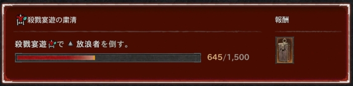 殺戮宴遊はブッチャーになって住人を蹂躙するコンテンツ。ここで出る放浪者は1回あたり30人前後。