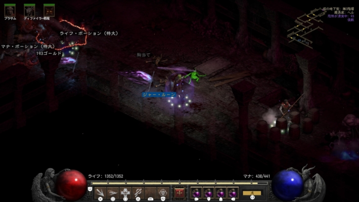 特にメフィストランは道中の骨チビがどうにもやっかいで疎遠でしたが、保険のローブリンガーを持って、道中をぽんぽんテレポで飛んでいけばさくっとメフィストまでたどり着けます。
